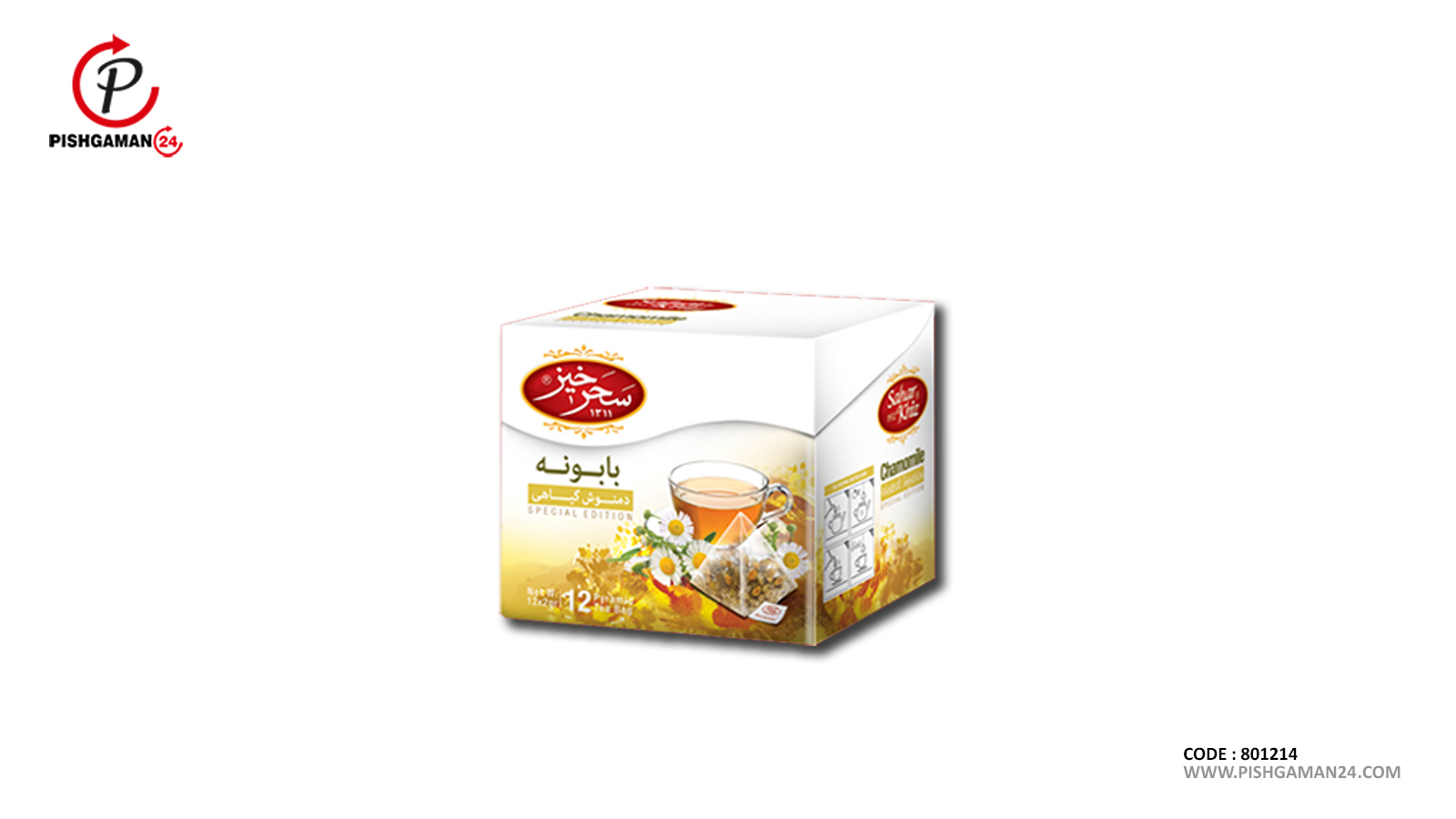 دمنوش بابونه فوق یکی از محصولات تولیدی با برند سحر خیز می باشد . دمنوش گیاهی نوعی نوشیدنی است که در آن جزیی از گل ، برگ ، ساقه ، ریشه ، دانه ، پوست میوه یا اجزای دیگر گیاهان دارویی بصورت خشک یا تازه مورد استفاده قرار میگیرد . دم کردن یا گرفتن عصاره به وسیلهٔ آب متداولترین و قدیمیترین روش به کار بردن داروهای گیاهی است . برخی برای موارد درمانی از این دمنوشها استفاده میکنند. تعدادی برای تنوع بخشیدن به نوشیدنی روزانه آن را مصرف میکنند . گیاهان دارویی منشأ طبیعی دارند و در مقایسه با داروهای شیمیایی عوارض کمتری ایجاد میکنند . دمنوش کیسه ای ، محصولی فوری برای تهیه یک لیوان نوشیدنی گرم است . سرعت رنگ دادن و دم کشیدن ، باعث شده که افراد زیادی طرفدار آن باشند . عدم نیاز به استفاده از صافی در دم کردن نیز یکی از دلایل توجه به استفاده از دمنوش کیسه ای می باشد . دمنوش سحر خیز در بسته بندی های متنوع جهت ارائه به بازار عرضه میگردد . جهت مشاهده دیگر محصولات برند سحر خیز ، می توانید روی لینک مقابل کلیک نمایید . (( دیگر محصولات برند سحر خیز ))