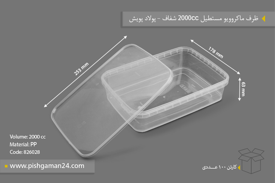 ظرف ماکروویو مستطیل 2000cc شفاف در کارتنهای 100 عددی به بازار عرضه میشود.
