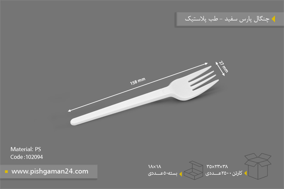 چنگال پارس سفید – ظروف یکبار مصرف طب پلاستیک دارای مشخصات و نوع بسته بندی به شرح عکس ذیل می باشد :