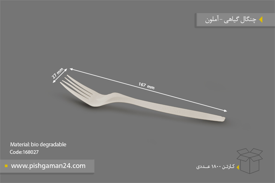 چنگال گیاهی آملون از محصولات باکیفیت و پرکاربرد این برند است که برای سرو انواع غذاهای گرم و سرد طراحی شده است. این مجموعه از ترکیبات گیاهی مبتنی بر نشاسته ذرت و بر اساس استاندارد بینالمللی Food Grade International (FGI) تولید میشود و یک گزینه سالم، ایمن و قابل اعتماد برای رستورانها، کترینگها، کافیشاپها و سرو غذاهای بیرونبر و انتخابی استاندارد، بهداشتی و سازگار با محیط زیست به شمار میرود.